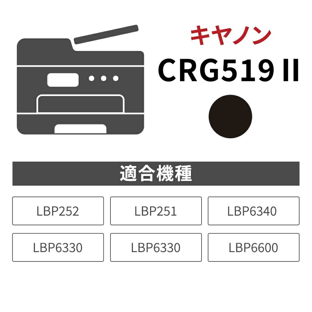 他の画像を見る キヤノン用 CRG-519Ⅱ 対応 ジットリユーストナー【JRT-CRG519-2】[RT] 当店通常価格 ¥ 12,730 税込 JAN:4530966761364 カートに入れる お気に入りに登録する
