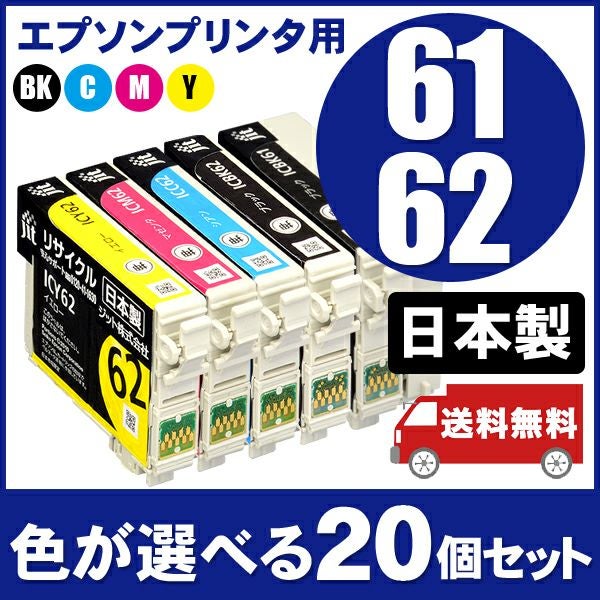 他の画像を見る まとめ買い≪色が選べる20本セット≫エプソン EPSON IC61/62シリーズ ジットリサイクルインクカートリッジ(ICBK61、ICC62、ICM62、ICY62)対応(エプソン)<ゆうパケット対応不可>[SP]20 当店通常価格 ¥ 17,824 税込 お好きな組み合わせでどうぞ。 詳細を見る お気に入りに登録する