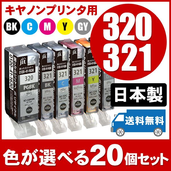 商品詳細 | キヤノン まとめ買い≪色が選べる20本セット≫Canon BCI-321シリーズ リサイクルインクカートリッジ(BCI-320PGBK、BCI-321BK、BCI-321C、BCI-321MBCI-321Y)対応(キヤノン)。ジットのリサイクルインクカートリッジはプリンタ本体保証と万全のサポート付きで安心。日本製。3,500円以上送料無料&平日15時まで最短即日発送。 【適合プリンタ】 PIXUS iP3600 / PIXUS iP4600 / PIXUS iP4700 / PIXUS MP540 / PIXUS MP550 / PIXUS MP560 / PIXUS MP620 / PIXUS MP630 / PIXUS MP640 / PIXUS MP980 / PIXUS MP990 / PIXUS MX860