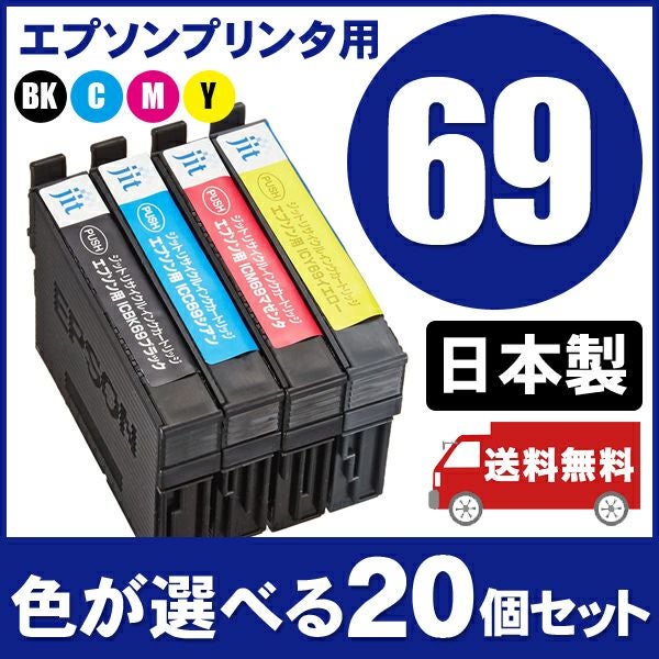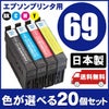 まとめ買い≪色が選べる20本セット≫エプソン EPSON IC69シリーズ ジットリサイクルインクカートリッジ(ICBK69、ICC69、ICM69、ICY69)対応(エプソン)<ゆうパケット対応不可>[SP]20