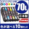まとめ買い≪色が選べる10本セット≫エプソン EPSON IC70L(増量)シリーズ ジットリサイクルインクカートリッジ(ICBK70L、ICC70L、ICM70L、ICY70L、ICLC70L、ICLM70L)対応(エプソン)<ゆうパケット対応不可>[SP]10