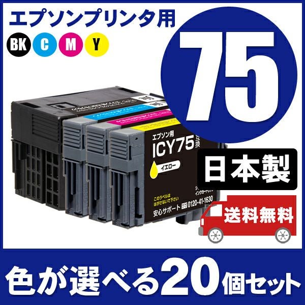 まとめ買い≪色が選べる20本セット≫エプソン EPSON IC75シリーズ ジットリサイクルインクカートリッジ(ICBK75、ICC75、ICM75、ICY75)対応(エプソン)<ゆうパケット対応不可>[SP]20