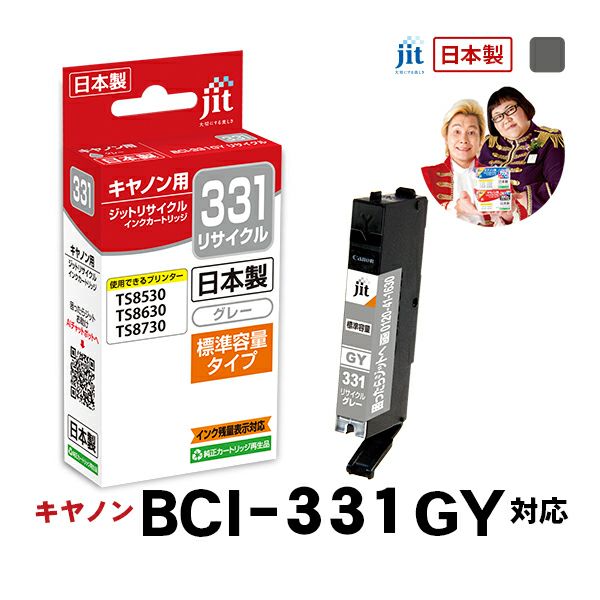 商品詳細 | キヤノン canon BCI-331GY (標準容量) 対応 グレー ジット リサイクルインクカートリッジ【JIT-C331GY】ジットのリサイクルインクカートリッジはプリンタ本体保証と万全のサポート付きで安心。日本製。3,500円以上送料無料&平日15時まで最短即日発送。 【適合プリンタ】 PIXUS TS8930 / PIXUS TS8830 / PIXUS TS8730 / PIXUS TS8630 / PIXUS TS8530