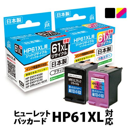 商品詳細 | ヒューレットパッカード HPHP61XL CH563WA/CH564WA ブラック/カラー対応 リサイクルインクカートリッジ。ジットのリサイクルインクカートリッジはプリンタ本体保証と万全のサポート付きで安心。日本製。3,500円以上送料無料&平日15時まで最短即日発送。 【適合プリンタ】 ENVY4500 / ENVY4504 / ENVY5530 / Officejet4630