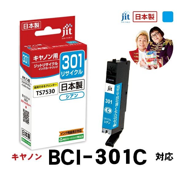 商品詳細 | キヤノン canon BCI-301C 対応 シアン ジット リサイクルインクカートリッジ【JIT-C301C】ジットのリサイクルインクカートリッジはプリンタ本体保証と万全のサポート付きで安心。日本製。3,500円以上送料無料&平日15時まで最短即日発送。 【適合プリンタ】 PIXUS TS7530