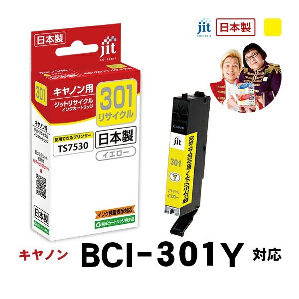 商品詳細 | キヤノン canon BCI-301Y 対応 イエロー ジット リサイクルインクカートリッジ【JIT-C301Y】ジットのリサイクルインクカートリッジはプリンタ本体保証と万全のサポート付きで安心。日本製。3,500円以上送料無料&平日15時まで最短即日発送。 【適合プリンタ】 PIXUS TS7530