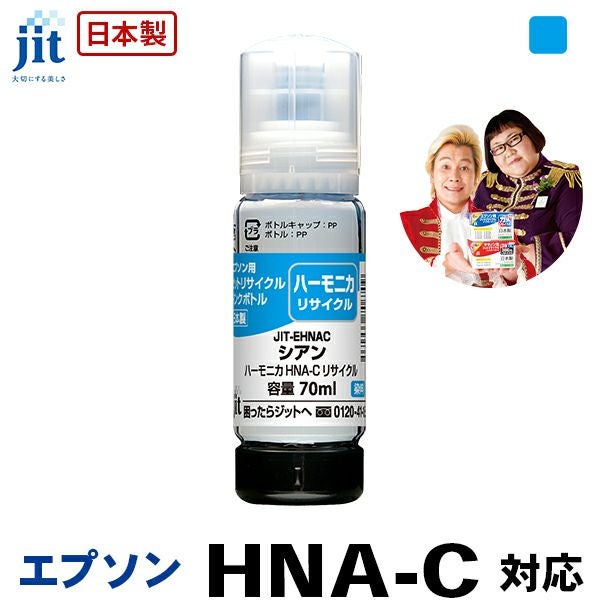 商品詳細 | エプソン EPSON EPSON HNA-C (ハーモニカ) シアン対応 ジット リサイクルインクボトル 【JIT-EHNAC】。ジットのリサイクルインクカートリッジはプリンタ本体保証と万全のサポート付きで安心。日本製。3,500円以上送料無料&平日15時まで最短即日発送。 【適合プリンタ】 EW-M770T / EW-M770TW / EW-M970A3T