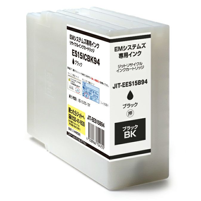 商品詳細 | EMシステムズ ES15ICBK94 ブラック対応 ジットリサイクルインクカートリッジ 【JIT-EES15B94】。ジットのリサイクルインクカートリッジはプリンタ本体保証と万全のサポート付きで安心。日本製。3,500円以上送料無料&平日15時まで最短即日発送。 【適合プリンタ】 ES-15 / ES-15Y