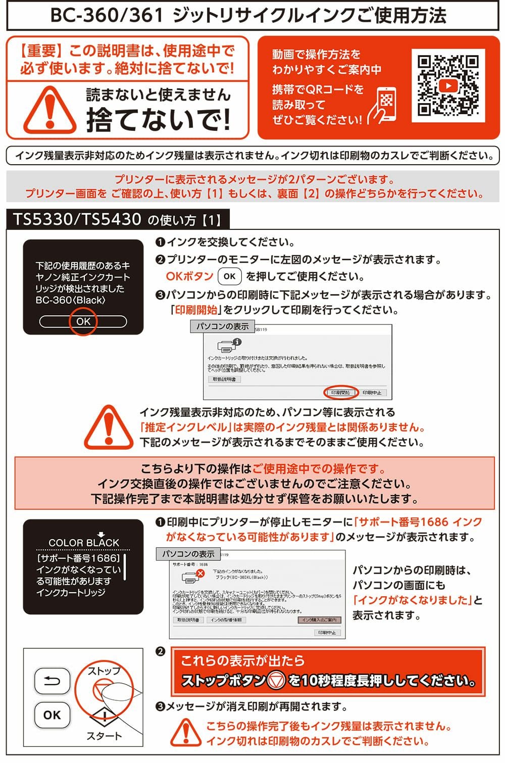 他の画像を見る インク キヤノン Canon BC-360BXL (大容量) ブラック 対応 ジット リサイクルインク カートリッジ 当店通常価格 ¥ 2,833 税込 JAN:4530966711635 詳細を見る お気に入りに登録する