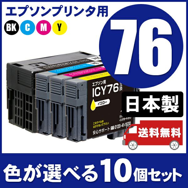他の画像を見る まとめ買い≪色が選べる10本セット≫エプソン EPSON IC76シリーズ ジットリサイクルインクカートリッジ(ICBK76、ICC76、ICM76、ICY76)対応(エプソン)[SP]10 当店通常価格 ¥ 22,449 税込 お好きな組み合わせでどうぞ。 詳細を見る お気に入りに登録する