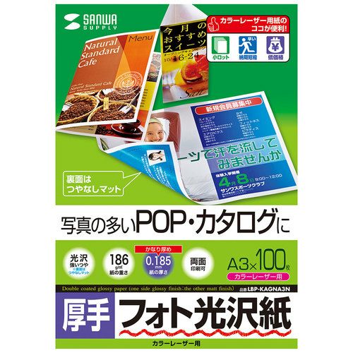 カラーレーザー用フォト光沢紙・厚手 サンワサプライ【LBP-KAGNA3N】[SAN]