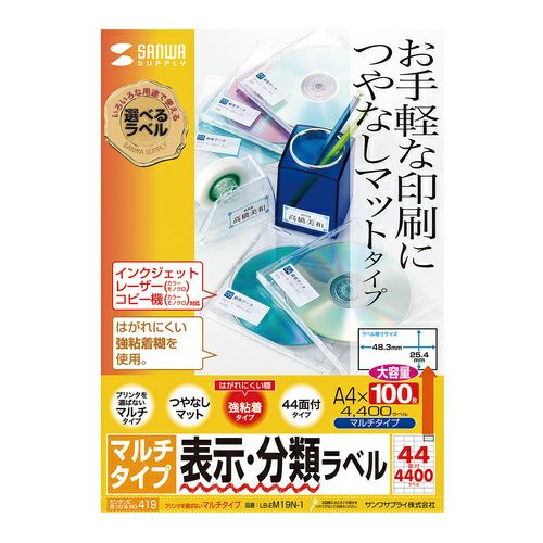 マルチラベル(44面) サンワサプライ【LB-EM19N-1】[SAN]