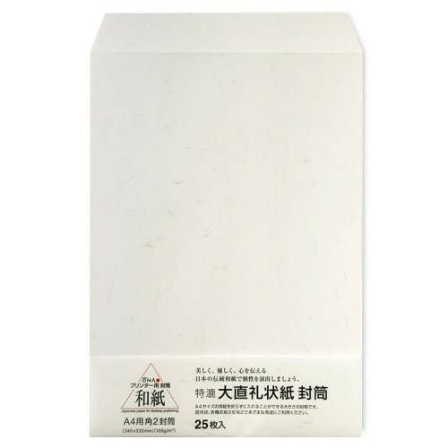 他の画像を見る 大直 インクジェット用和紙 特漉 大直礼状紙 A4が折らずに入る角2封筒 25枚入[ONA]〈ゆうパケット対応不可〉 当店通常価格 ¥ 2,090 税込 和紙の里・山梨県市川三郷町で漉かれる「大直(おおなお)」の上質な和紙です。 詳細を見る お気に入りに登録する