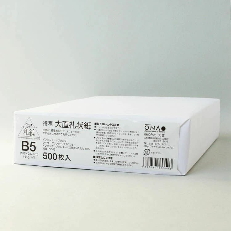 他の画像を見る 大直 インクジェット用和紙 大直礼状紙 B5 500枚入 お礼状 冠婚葬祭 お品書き メニュー お礼状 冠婚葬祭 お品書き メニュー[ONA] 当店通常価格 ¥ 3,960 税込 詳細を見る お気に入りに登録する