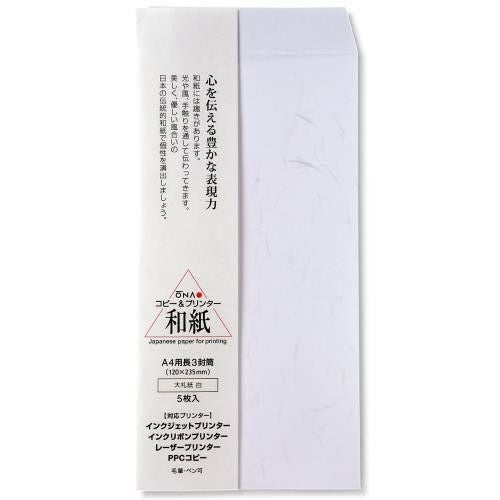 大直 インクジェット用和紙 大礼紙 白 A4三つ折りが入る長3封筒 5枚入[ONA]
