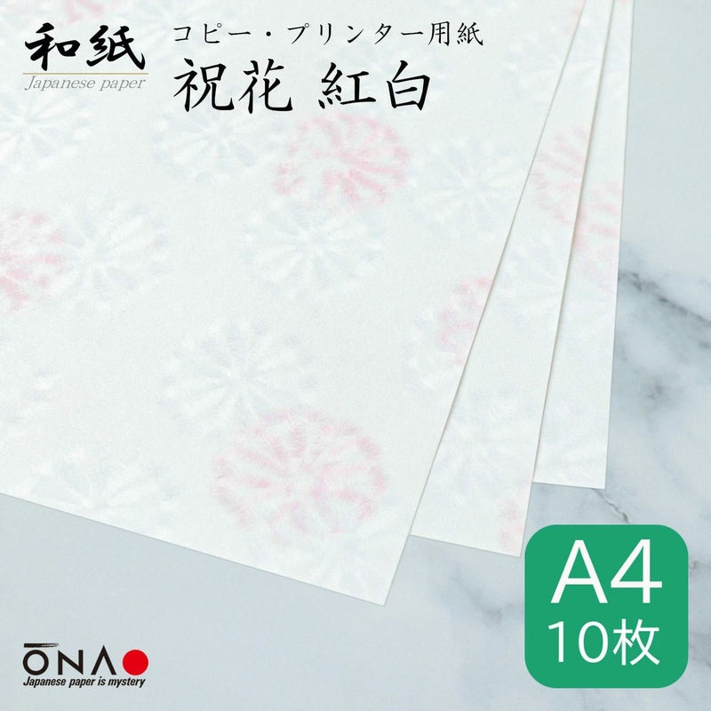商品詳細|大直 インクジェット用和紙 祝花 紅白 A4 10枚入り 和紙の里・山梨県市川三郷町で漉かれる「大直(おおなお)」の上質な和紙です。 お品書き 和風 ウェディング メニュー 招待状 挨拶状 御礼 席札 お礼状 ビジネス フォーマル 案内 プログラム 披露宴