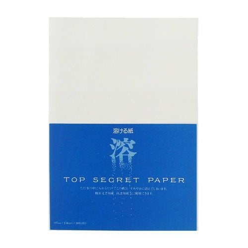 トップシークレットペーパーは水に入れると、すみやかに溶けてしまいます。 ●個人情報の保護に最適 ●シュレッダーいらず ●手品や流し灯篭などの工作にも活用可 ●手書きでも使用可 等々の用途にご使用いただけます。