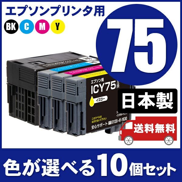 まとめ買い≪色が選べる10本セット≫エプソン EPSON IC75シリーズ ジットリサイクルインクカートリッジ(ICBK75、ICC75、ICM75、ICY75)対応(エプソン)[SP]10