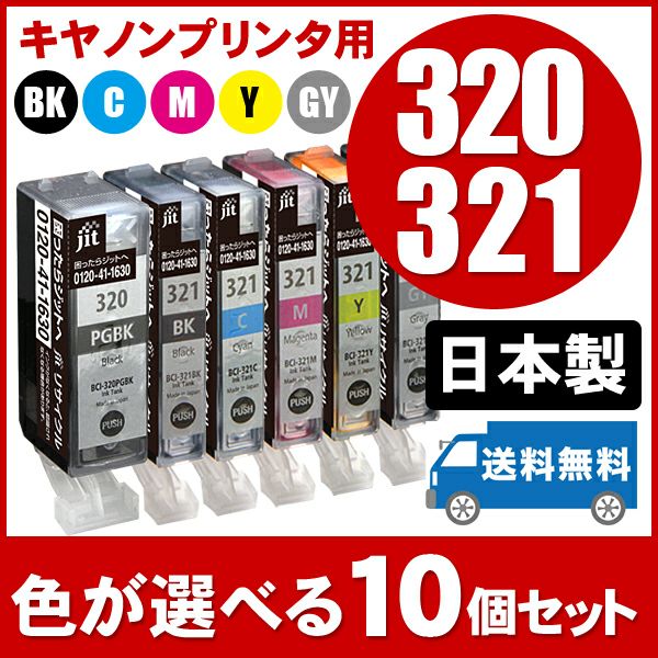 まとめ買い≪色が選べる10本セット≫キヤノン Canon BCI-321シリーズ ジットリサイクルインクカートリッジ(BCI-320PGBK、BCI-321BK、BCI-321C、BCI-321MBCI-321Y)対応(キヤノン)<ゆうパケット対応不可>[SP]10