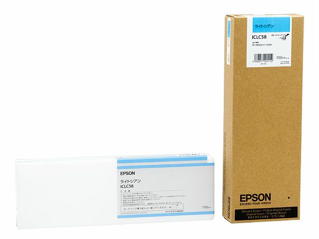 商品詳細 | 純正 エプソン ICLC58 ライトシアン インクカートリッジ EPSON純正インク。純正品です。ジットストア本店は、3,500円以上送料無料&平日15時まで最短即日発送。 【適合プリンタ】 PX-H10000 / PX-H10PSPC / PX-H10RC / PX-H10RC2 / PX-H10RC3 / PX-H10RC4 / PX-H10RC5 / PX-H7000 / PX-H7PSPC / PX-H7RC2 / PX-H7RC3 / PX-H7RC4 / PX-H7RC5 / PX-H8000 / PX-H8PSPC / PX-H8RC / PX-H8RC2 / PX-H8RC3 / PX-H8RC4 / PX-H8RC5 / PX-H9000 / PX-H9PSPC / PX-H9RC2 / PX-H9RC3 / PX-H9RC4 / PX-H9RC5 / PX-W8000