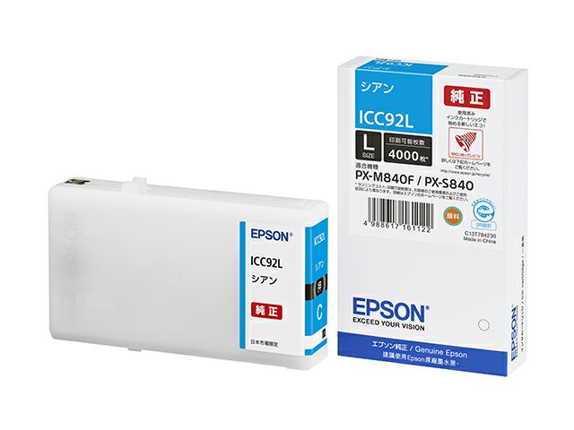 商品詳細 | 純正 エプソン ICC92L シアン インクカートリッジ EPSON純正インク。純正品です。ジットストア本店は、3,500円以上送料無料&平日15時まで最短即日発送。 【適合プリンタ】 PX-M840F / S840