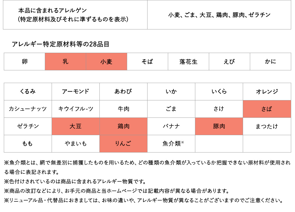 めん(小麦粉(国内製造)、食塩/加工でん粉、酒精、トレハロース)液体調味料(水飴、カレー粉、かつおエキス、味噌、砂糖、食塩、トマトペースト、?油、蛋白加水分解物、植物油、ぶどう糖果糖液糖、おろしにんにく、チキンエキス、クミンパウダー、コリアンダーパウダー、醸造酢、濃縮レモン果汁、ウスターソース/調味料(アミノ酸等)、香辛料抽出物、酸味料、増粘剤(キサンタン))