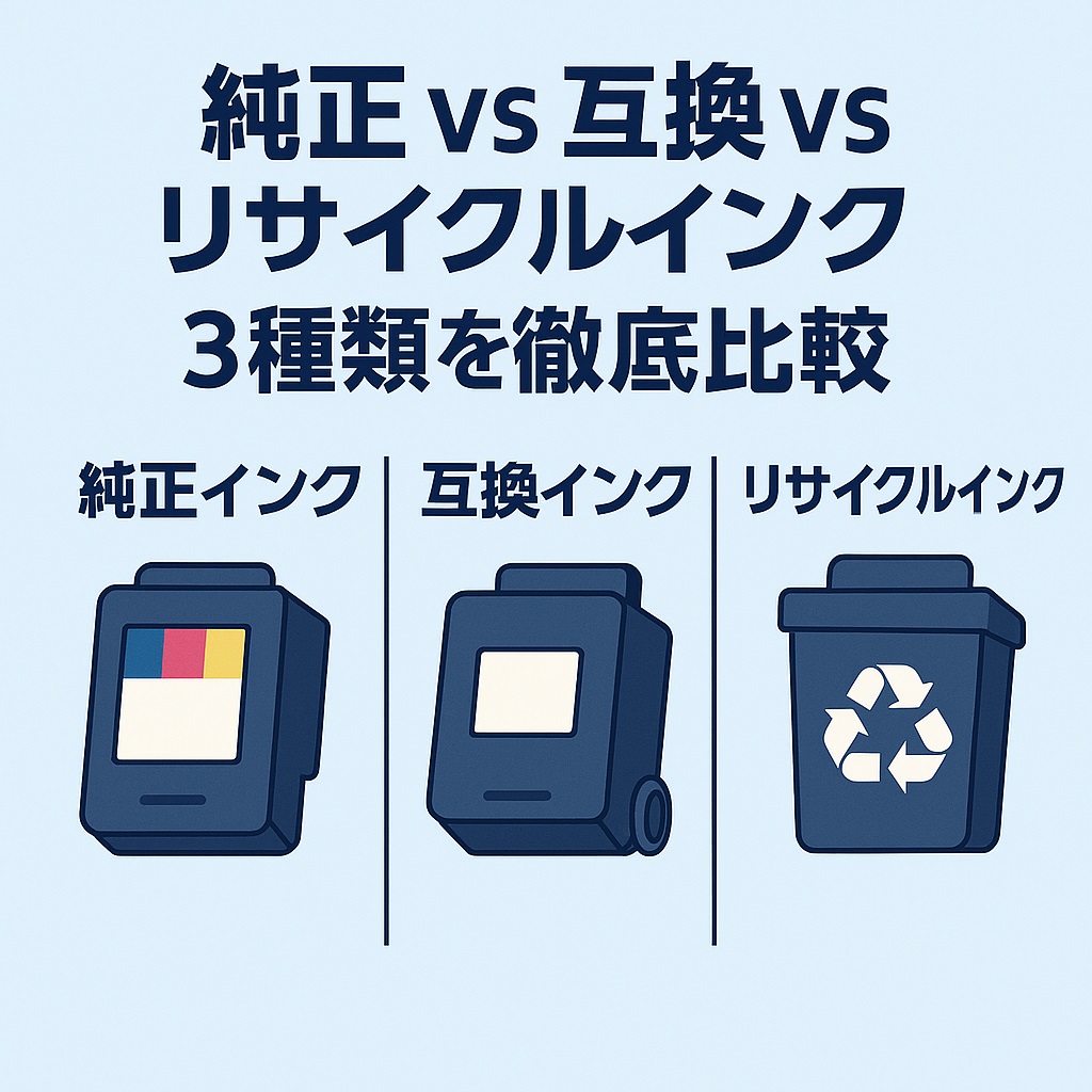 同じ型番のインクでも「純正」「互換」「リサイクル」と種類が多く、価格も性能もバラバラです。