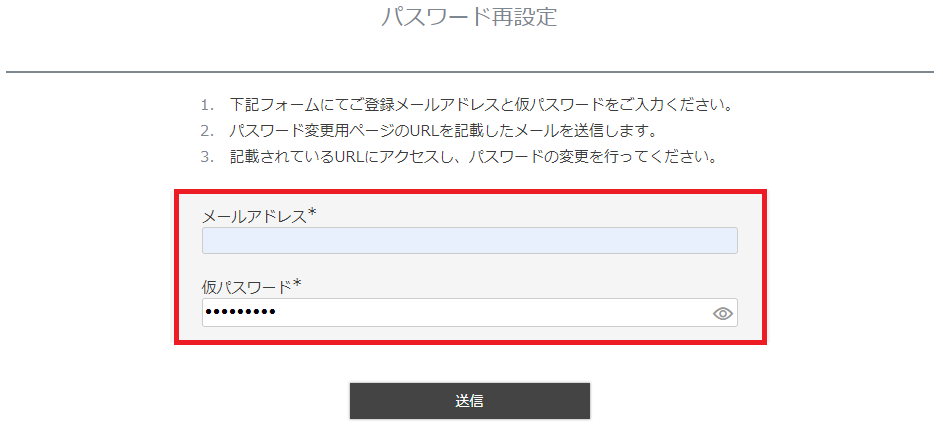 記載のURLからパスワード再設定のページへアクセスしてください。
