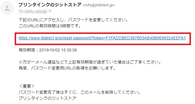 お使いのメールアドレスに、パスワード再設定のためのメールが届くので