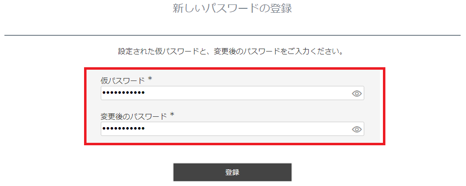 step.1で設定した仮パスワードを入力して、「登録」ボタンをクリックしてください。