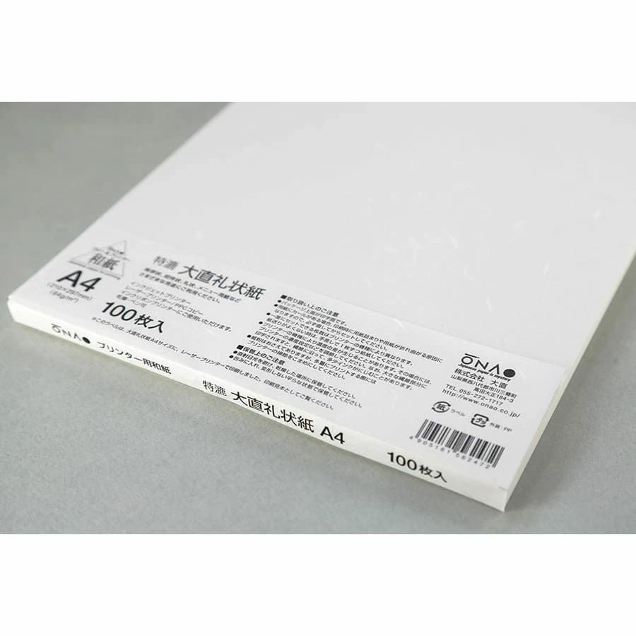 他の画像を見る 大直 インクジェット用和紙 特漉 大直礼状紙 A4 500枚入[ONA]<ゆうパケット対応不可> 当店通常価格 ¥ 5,280 税込 和紙の里・山梨県市川三郷町で漉かれる「大直(おおなお)」の上質な和紙です。 詳細を見る お気に入りに登録する