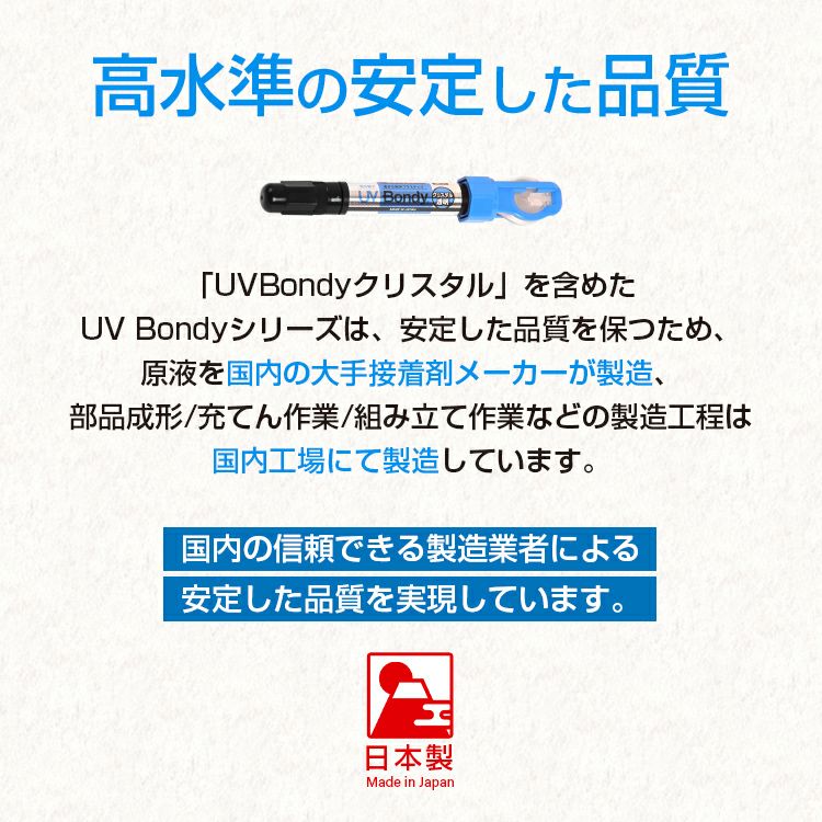 他の画像を見る 日本製 UV Bondy(ユーブイ ボンディ) クリスタル透明 スターターキット ほぼすべてのものを接着、固定、塞ぐことが可能!液体プラスチック 接着剤 溶接機 LED(UV)紫外線ライト 当店通常価格 ¥ 2,480 税込 詳細を見る お気に入りに登録する