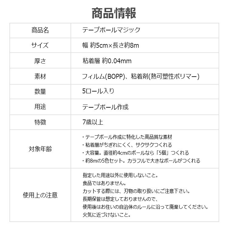 他の画像を見る テープボールマジック!幅5cmX長さ8m×5ロール DIY おもちゃ 5色セット 大容量 ストレス発散 当店通常価格 ¥ 1,628 税込 在庫切れ カートに入れる お気に入りに登録する