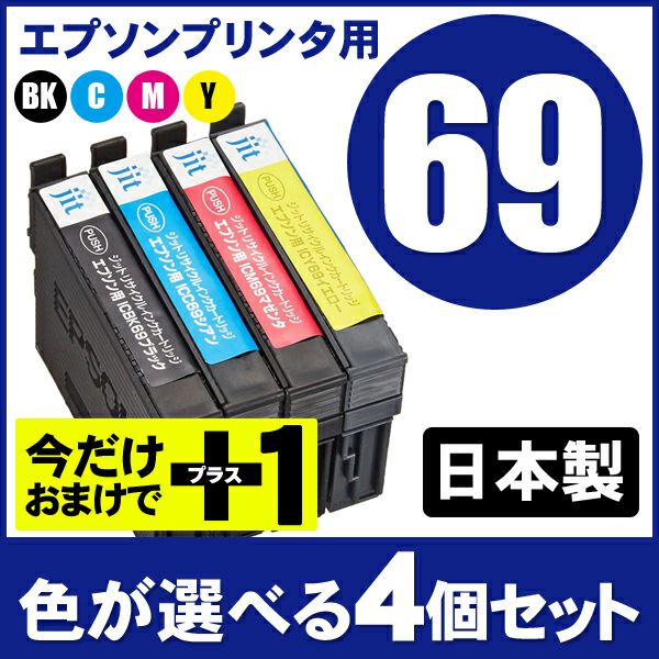 他の画像を見る 【セレクトパック-色が選べる4本セット 今だけおまけで+1本】エプソン EPSON IC69シリーズ リサイクルインクカートリッジ(ICBK69、ICC69、ICM69、ICY69)対応(エプソン)[SP]5 当店通常価格 ¥ 2,808 税込 お好きな組み合わせでどうぞ。 詳細を見る お気に入りに登録する