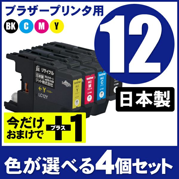 他の画像を見る 【セレクトパック-色が選べる4本セット 今だけおまけで+1本】ブラザー brother LC12シリーズ リサイクルインクカートリッジ(LC12BK、LC12C、LC12M、LC12Y)対応(ブラザー)[SP]5 当店通常価格 ¥ 3,017 税込 お好きな組み合わせでどうぞ。 詳細を見る お気に入りに登録する
